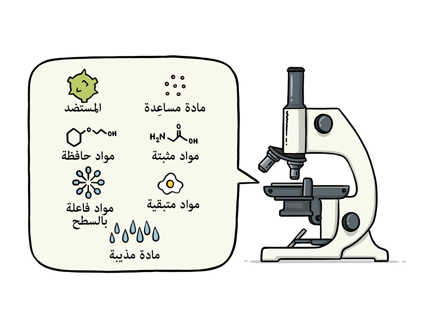 تحافظ المواد الفاعلة بالسطح على الامتزاج الجيد لجميع مكوّنات اللقاح. وتحول دون ترسّب العناصر الموجودة في الشكل السائل للقاح وتكتلها. وغالباً ما تُستخدم أيضاً في الأغذية مثل البوظة (الآيس كريم).
