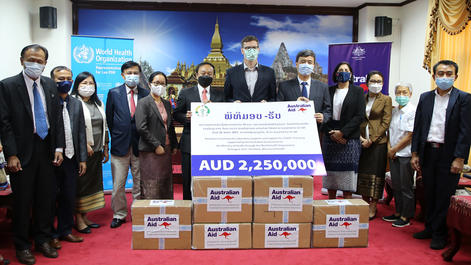 A handover ceremony was held at the Ministry of Health where laboratory reagents and supplies for COVID-19 testing estimated at LAK15.4 billion (AUD2,250,000) was received through the World Health Organization (WHO). This contribution from the Australian Government is in addition to Australia’s support of LAK111.6 billion (AUD16.2 million) to the Lao Government for COVID-19 vaccine support.